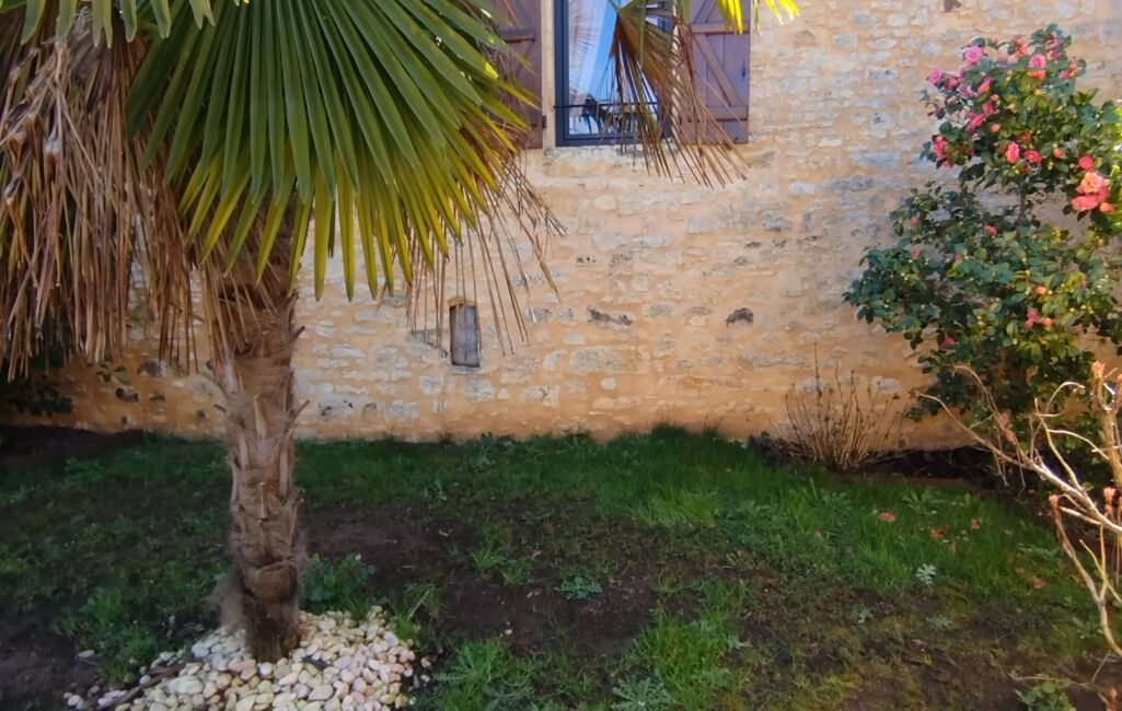 À l’extérieur, la propriété dispose d’une cour permettant le stationnement, avec également des places à proximité dans le village. Un carport d’environ 15 m², pouvant servir de cuisine d’été, offre un espace ombragé agréable. Une terrasse vient compléter les espaces extérieurs, directement attenante au salon.