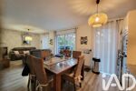 La pièce de vie lumineuse réunit une belle cuisine, entièrement aménagée et équipée, ouverte sur le salon. Cet espace convivial bénéficie de trois grandes ouvertures vitrées donnant directement sur le jardin, apportant une belle luminosité tout au long de la journée.