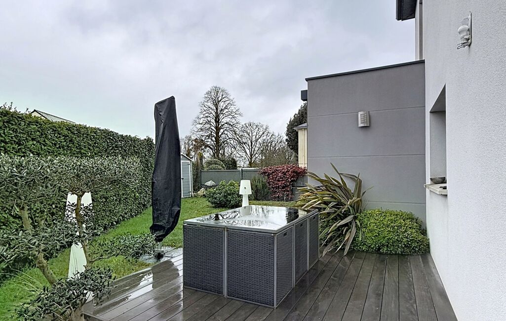 iad France - Arnaud Boucheteil vous propose: À SUCÉ-SUR-ERDRE, Rue de Casson, maison lumineuse de standing récente (2013) 5 pièces de 158m2 environ sur un terrain de 735m2 environ. Aucun travaux à prévoir. À proximité immédiate des écoles, des transports et des commodités à pied (5min). Cette maison (orientée sud-est) en parfait état avec des matériaux de qualité comprend : une entrée avec rangements, un grand double séjour donnant sur une terrasse, un coin avec spa 5 places, un jardin. Une cuisine américaine, équipée et aménagée avec un cellier, une chambre et une salle d'eau avec dressing. À l'étage, un grand palier avec un coin bureau desservant 3 chambres avec rangements, une salle d'eau et WC séparé. Un garage avec rangements avec possibilité de garer plusieurs véhicules devant la maison. Chauffage au sol par aérothermie, double vitrage, panneaux photovoltaïques, DPE A.