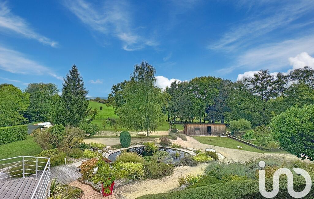 iad France - Maëva Bevillard vous propose: Située dans un hameau paisible, cette superbe propriété de caractère, rénovée avec soin date de 1811. Elle développe environ 267 m² habitables, complétés par 50 m² d’annexes, le tout sur un terrain arboré de 4 132 m².