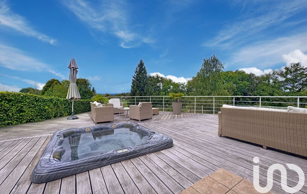 L’extérieur offre de nombreux aménagements : plusieurs terrasses, un potager, un terrain de pétanque, un grand garage avec grenier, une cabane, un poulailler, des mares agrémentées de cascades, ainsi qu’un portail avec accès par chemin indépendant.