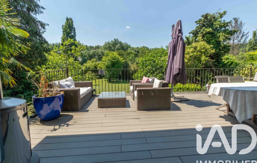 iad France - Eric Billaut vous propose: Dans le cadre idyllique de l’ile de Villennes, un domaine privé et sécurisé, découvrez cette belle demeure contemporaine d'une superficie de 265m2 édifiée sur un beau terrain de 2250 m2 agrémenté d'un ponton pour amarrer votre bateau.