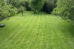 Beau jardin plat et arboré, deux abris de jardin.