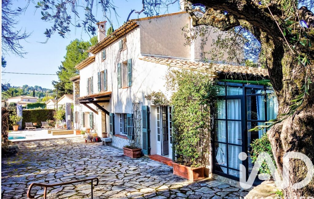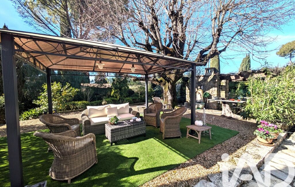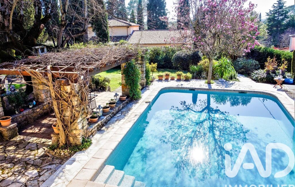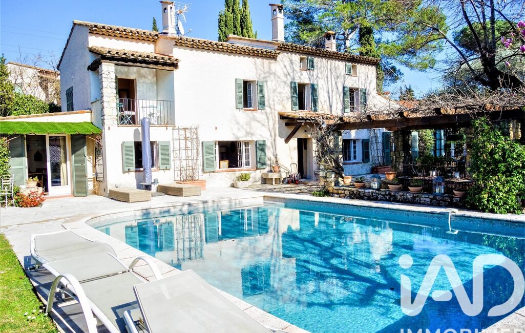 iad France - Thierry Barrau vous propose: Au sein d’un quartier résidentiel de Mougins, et à proximité de Cannes, Mas Provençal de 179m² exposée Sud, implantée sur un terrain arboré et plat de 1862m² agrémenté d’une piscine de 9 X 5.5M. La Propriété très typique possède beaucoup de charme tant sur les extérieurs qu’à l’intérieur.