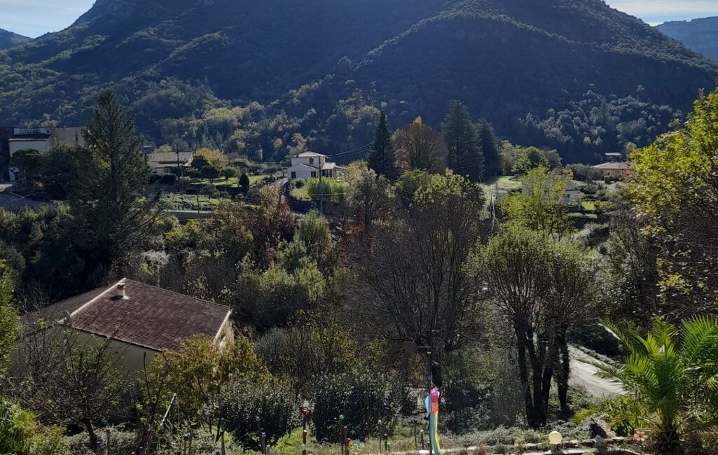 iad France - Audrey Girard vous propose: Sur les hauteurs de Sumène face au Ranc de Banes, cette propriété avec piscine implantée sur 1500m2 de terrain se compose d'un logement principal de 130m2 habitables de plain pied ainsi que d'un sous sol aménageable et d'un mazet indépendant.