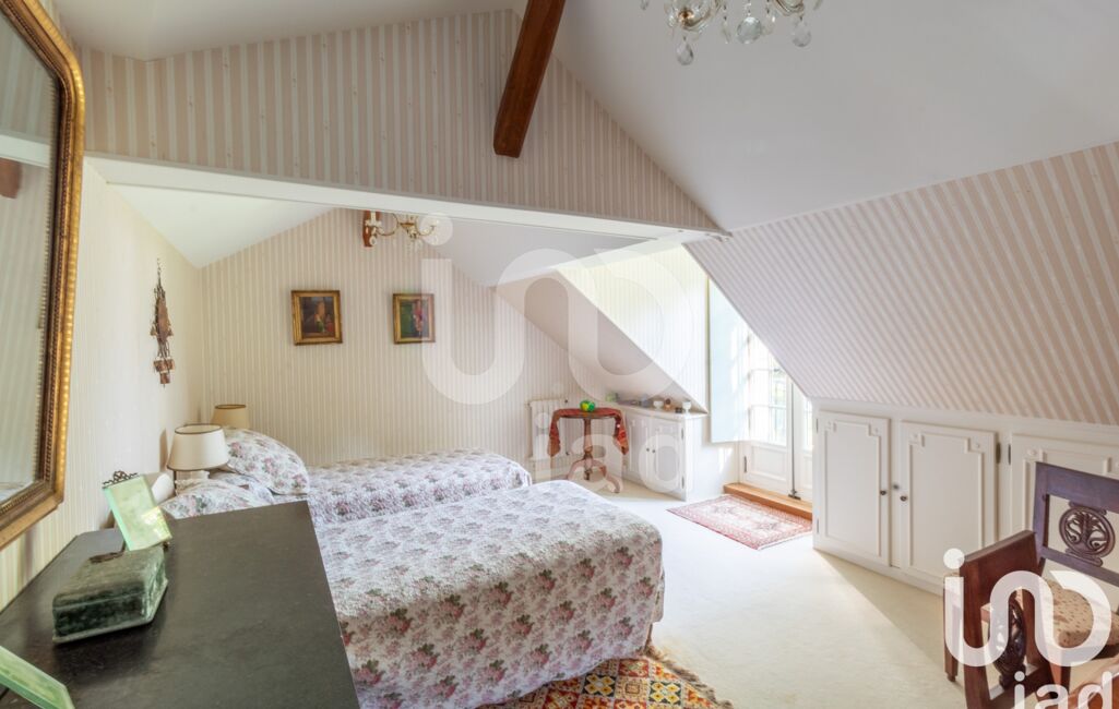 La maison est composée au rez de chaussée d'une entrée, d'un salon de 51 m², d'une salle à manger, d'une cuisine, d'une chambre, d'une salle de bain avec WC , d'une salle d'eau avec WC, d'une arrière cuisine, d'un cellier et d'une lingerie. A l'étage, accessible par un bel escalier, on découvre un palier qui dessert 1 suite parentale de 27 m² (avec salle de bain et WC), une chambre et un bureau. A l'extérieur, on découvre un parc paysager avec sa mare, ses dépendances (grange, petits bâtiments et abri de jardin), une terrasse en pierre de