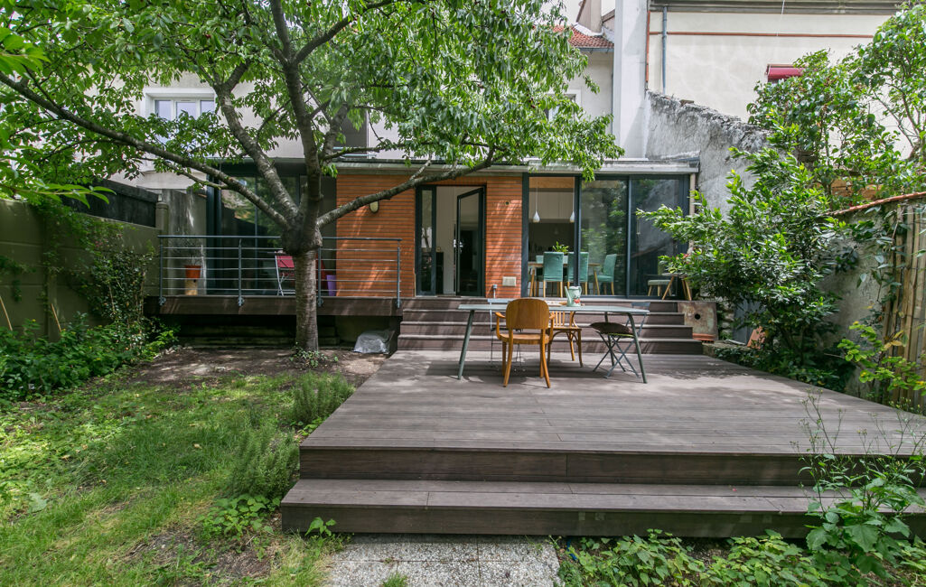 Bas Montreuil limite Vincennes. Superbe maison 8 pièces de 220m2 au sol avec un jardin d'environ 80m2. Elle se compose d'un grand double séjour, d'une cuisine, de 4 chambres dont une suite parentale et de deux salles de bains. Une cave la complète. Parking.