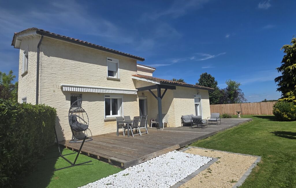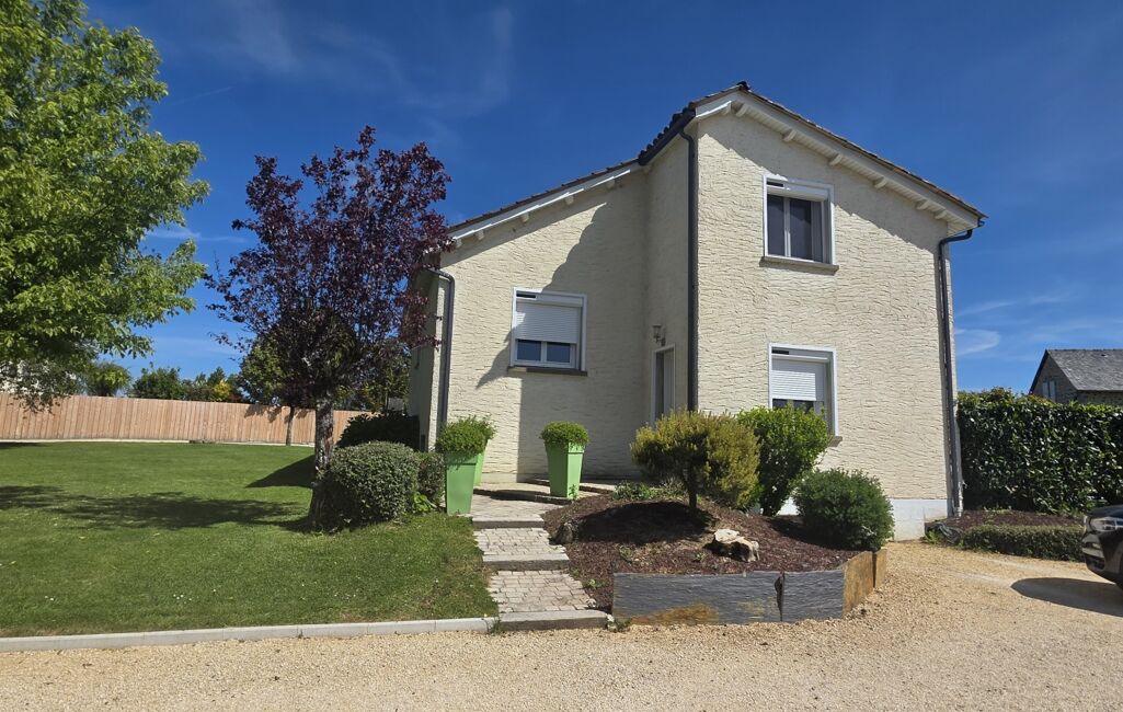 iad France - Paul-Francois Ginouves vous propose: À seulement 15 minutes d’Aurillac, dans une impasse calme et sans vis-à-vis, découvrez cette maison d’architecte, construite sur un magnifique terrain arboré et aménagé de 1 800 m², à 500 mètres du bourg et des commodités.