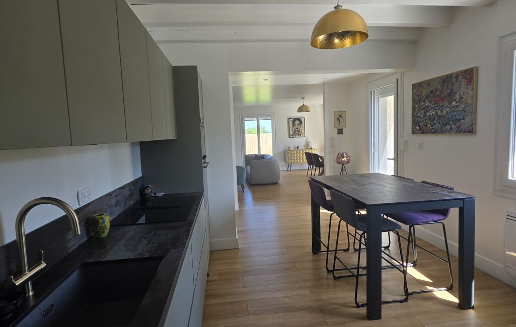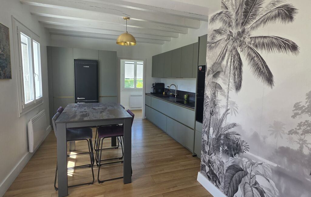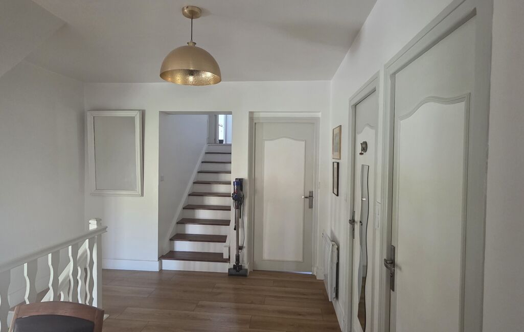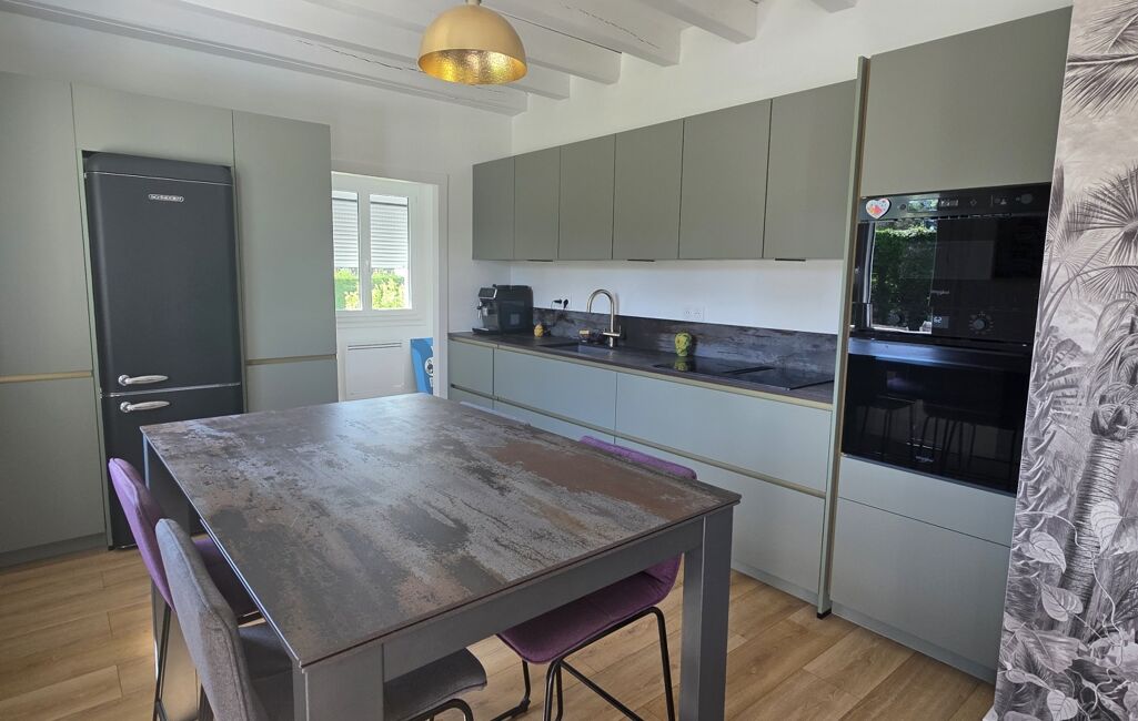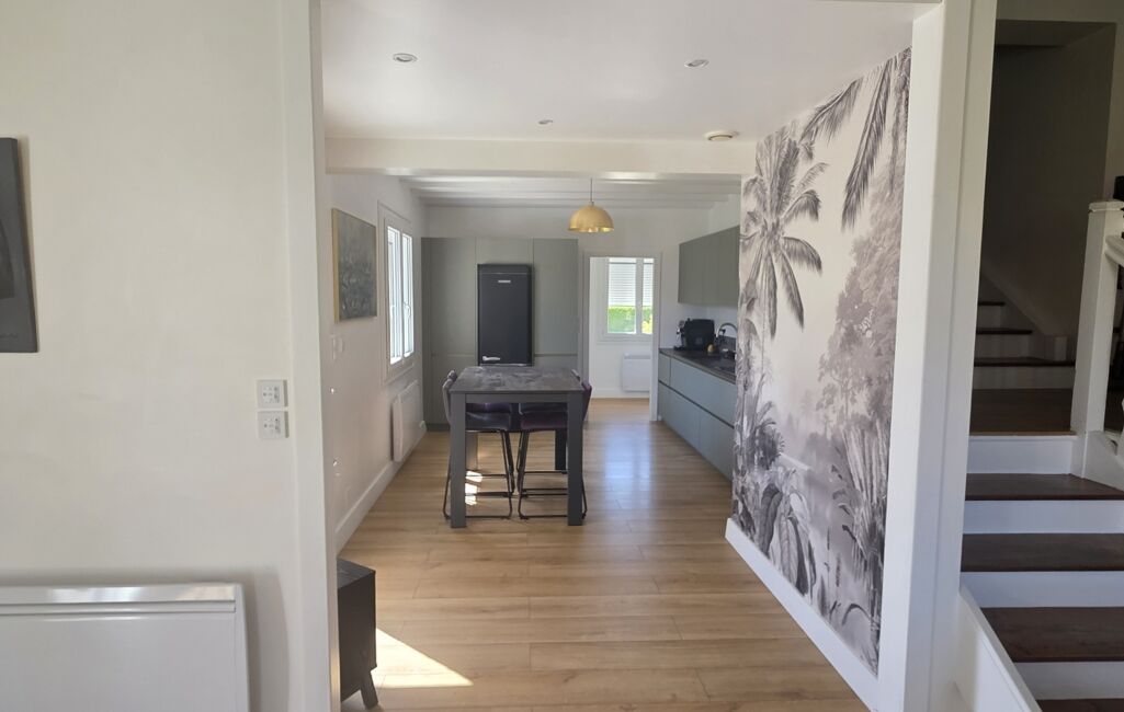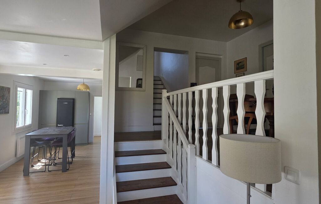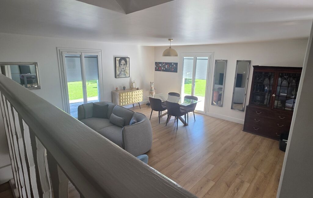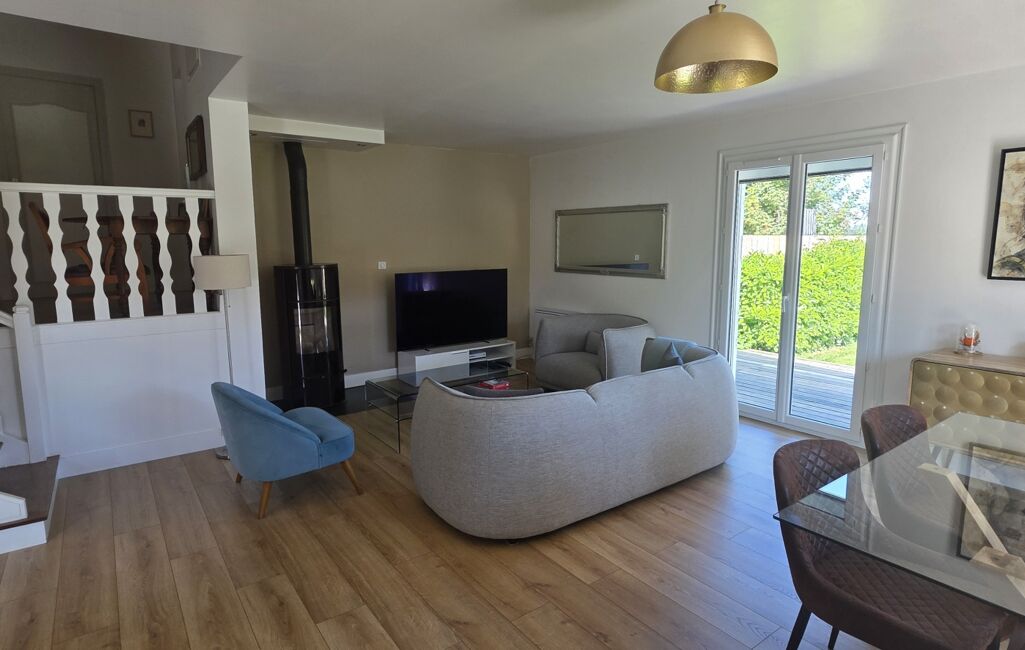 Édifiée sur un sous-sol complet, elle offre environ 124 m² habitables et un agencement fonctionnel. Le sous-sol comprend un garage double en enfilade, une cave et un espace de rangement. Au rez-de-chaussée, vous trouverez une cuisine indépendante entièrement rénovée il y a 1 an, avec un cellier attenant, ainsi qu’un séjour lumineux de 34 m² agrémenté d’un poêle à bois.