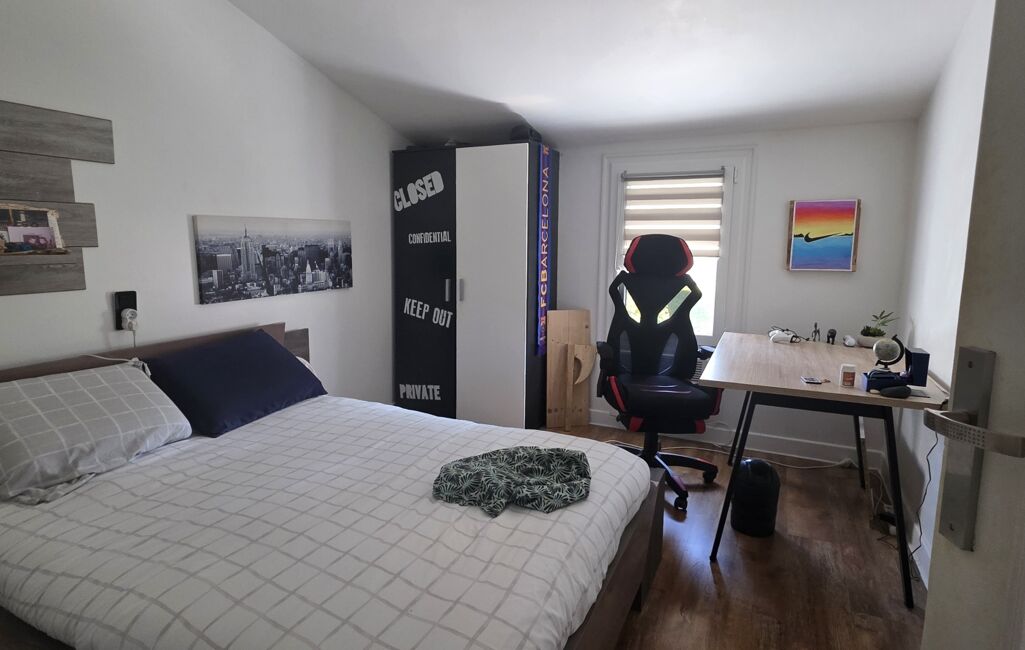 Le demi-étage se compose de deux chambres de 13 m², d’une salle d’eau et d’un WC indépendant. Le premier étage accueille deux chambres supplémentaires de 9 et 11 m².