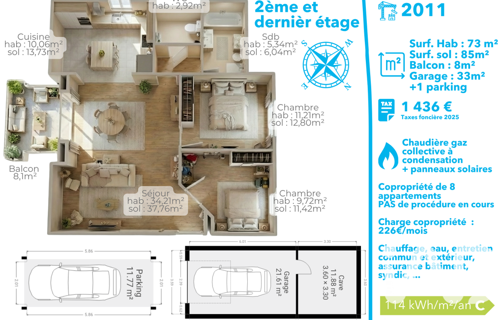 • Surface habitable : 73 m²