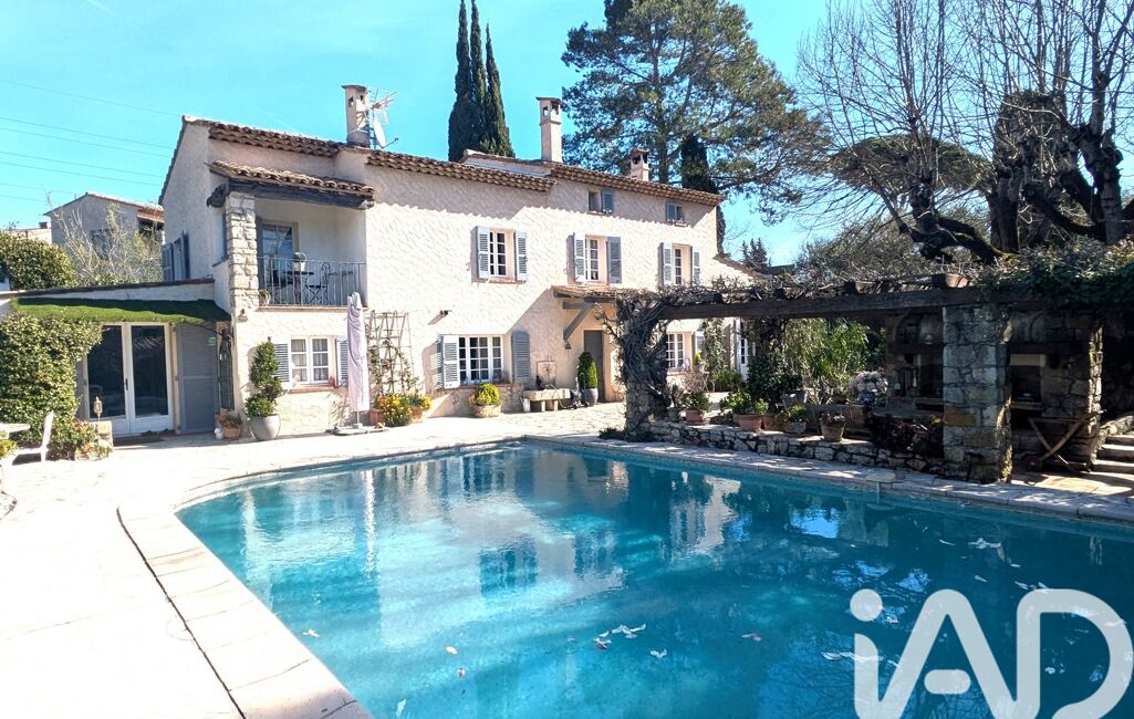 iad France - Thierry Barrau vous propose: Au sein d’un quartier résidentiel de Mougins, et à proximité de Cannes, Mas Provençal de 179m² exposée Sud, implantée sur un terrain arboré et plat de 1862m² agrémenté d’une piscine de 9 X 5.5M. La Propriété très typique possède beaucoup de charme tant sur les extérieurs qu’à l’intérieur.