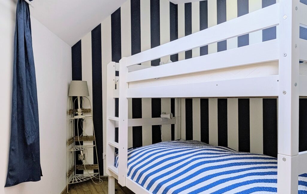 A l'étage, une seconde chambre avec rangements et aperçu mer.