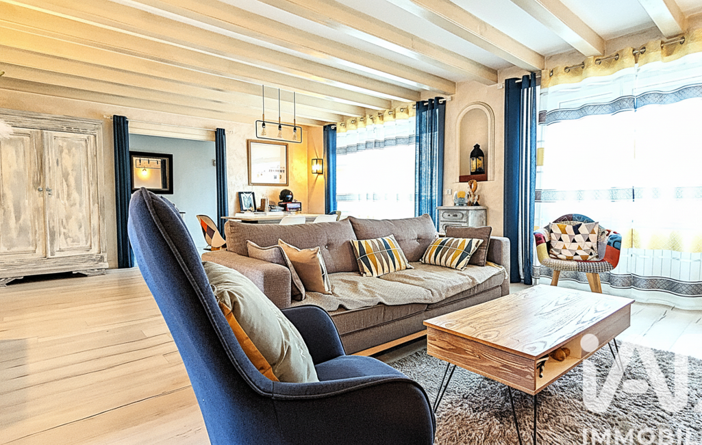 Dès l’entrée, vous découvrirez une belle pièce de vie lumineuse de 37 m² environ, aux volumes généreux, propice aux moments de partage.