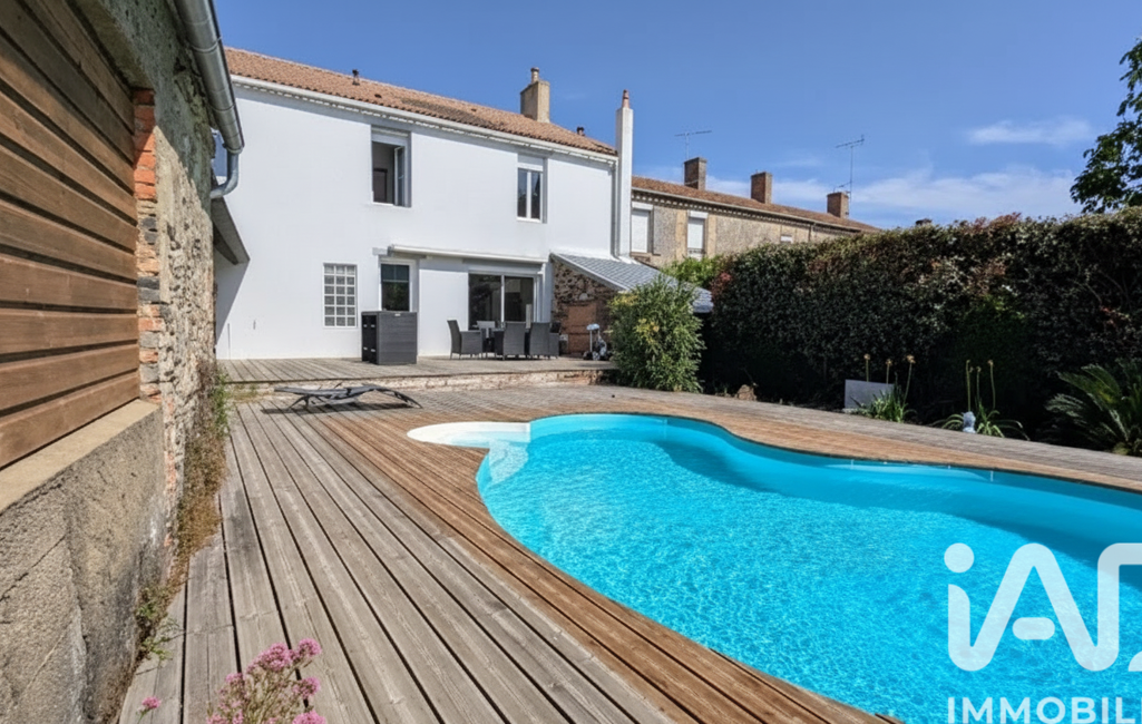 iad France - Pierre Métaye vous propose: MAISON FAMILIALE 167 m² – CENTRE DE VAIRÉ – 5 CHAMBRES – JARDIN CLOS – DÉPENDANCE EN PIERRE – PISCINE CHAUFFÉE – GARAGE 22 m²