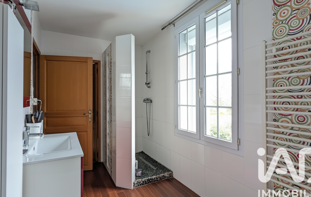 L’espace nuit se compose de cinq chambres, dont une avec salle d’eau privative, ainsi qu’une salle de bain complète avec douche à l’italienne, baignoire et sèche-serviette.