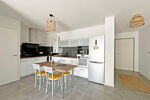 Entrée, séjour lumineux avec cuisine équipée de 34,16 m² ouvrant sur une agréable terrasse couverte de 9,39 m², offrant une belle exposition (Sud, Ouest et Nord).