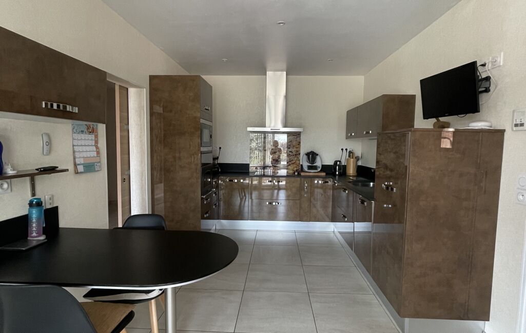 Elle se compose d'une grande cuisine toute équipée donnant sur une véranda lumineuse, d'un cellier, d'un salon salle à manger avec insert, de 3 chambres spacieuses, d'une salle d'eau moderne et fonctionnelle et d'un WC séparé.