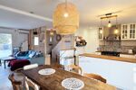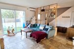 Mitoyenne uniquement par le garage, elle dispose d'une entrée, un beau séjour lumineux, d'une cuisine équipée ouverte sur le coin repas, un wc, ainsi qu'un accès au garage.
