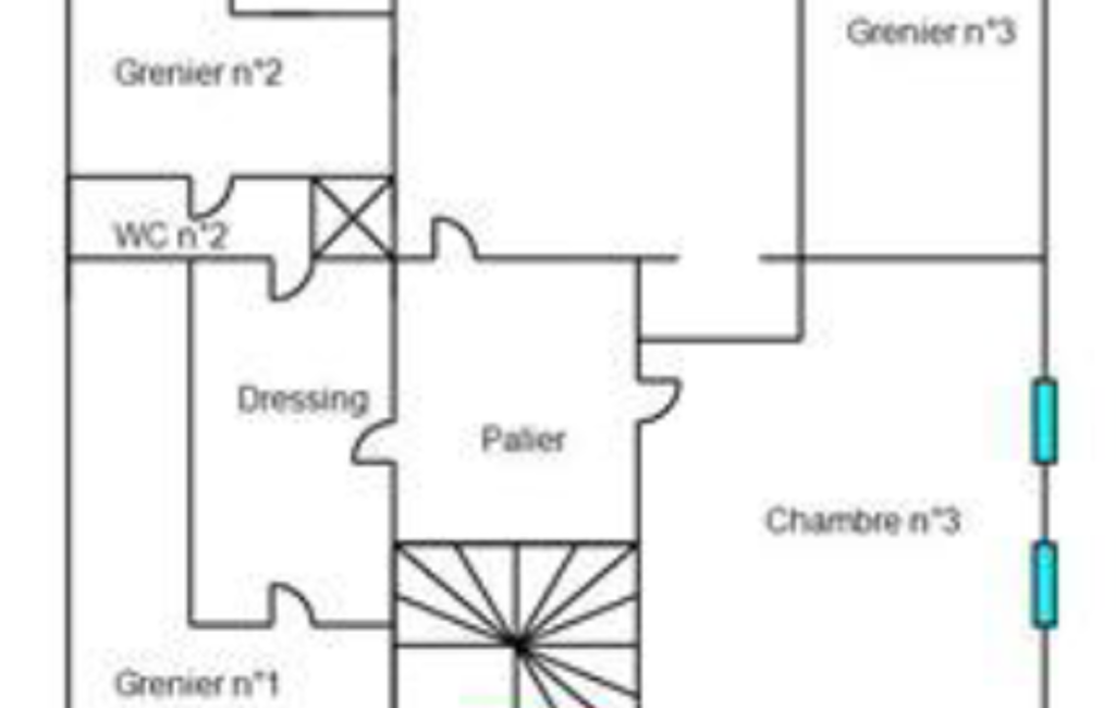 À l’étage, l’espace nuit propose deux chambres, dont une avec grenier aménageable et salle d’eau attenante, ainsi qu’un dressing et des toilettes, offrant des possibilités d’évolution selon vos besoins.