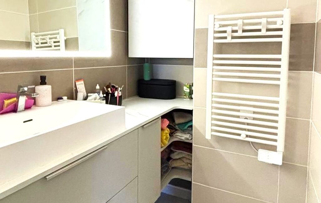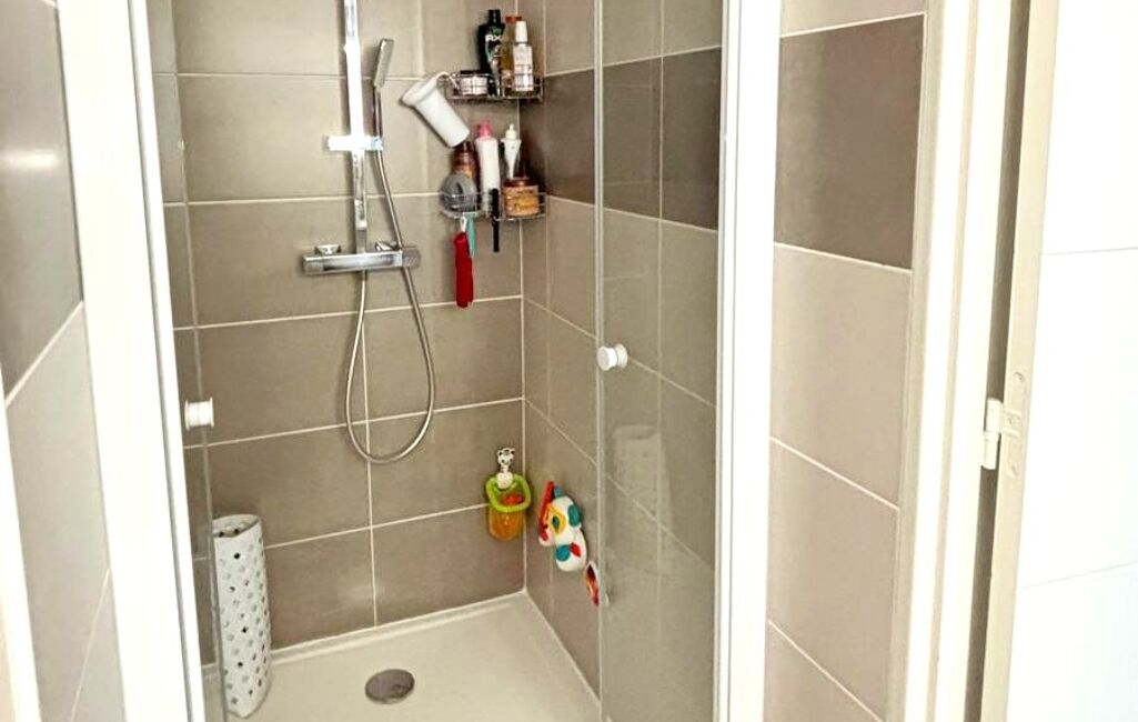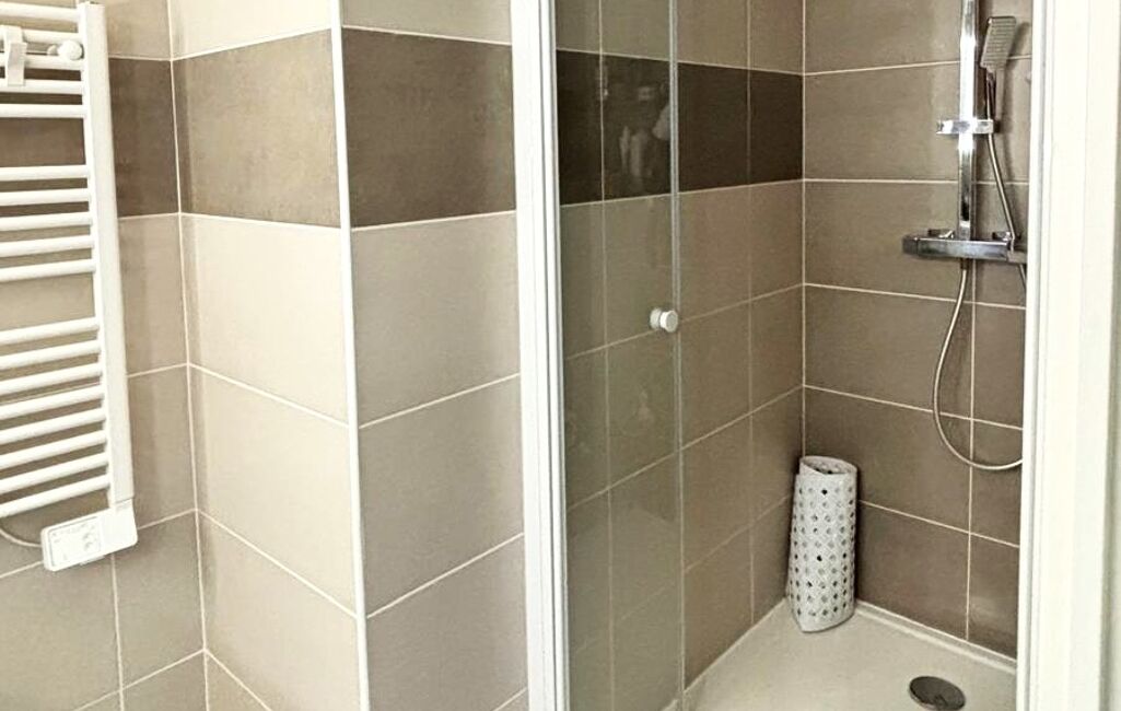 - Salle d’eau avec douche 90x120, grande vasque et rangements.