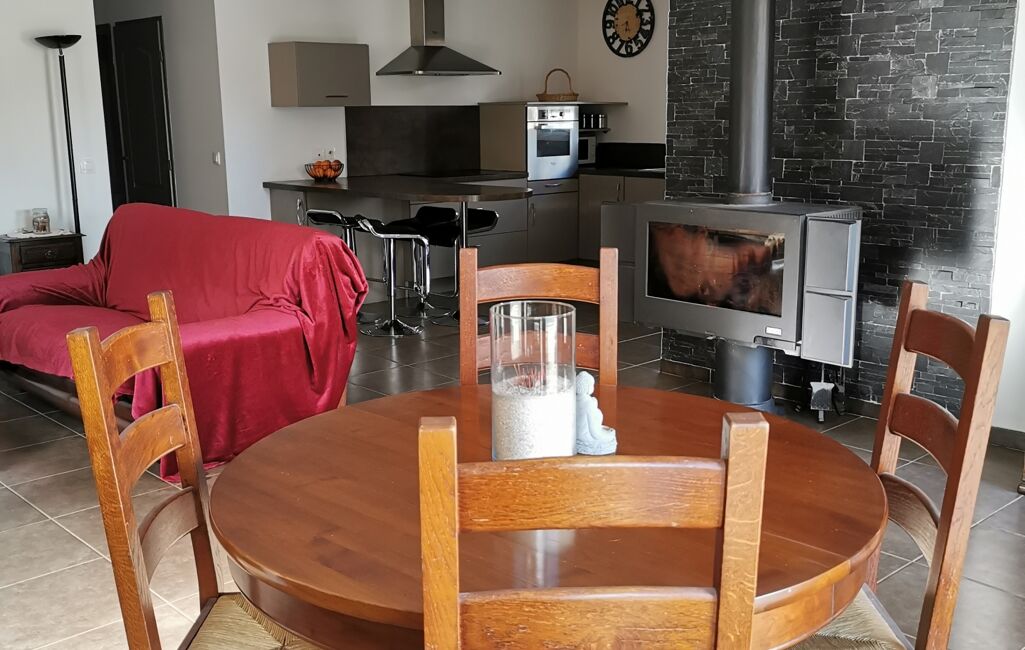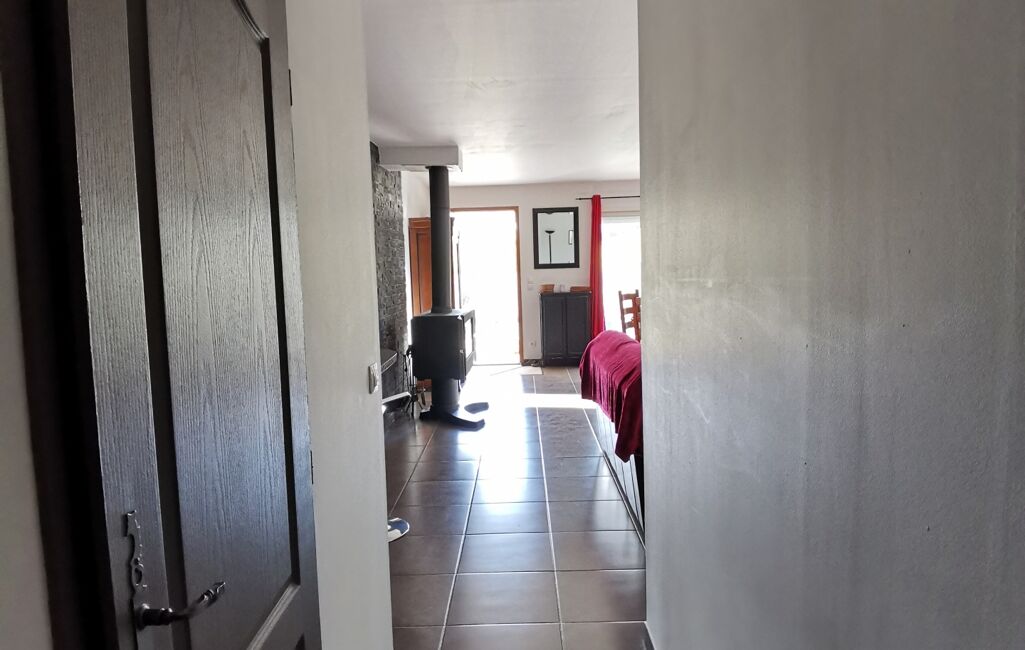 L'entrée s'ouvre sur une SPACIEUSE ET LUMINEUSE PIECE DE VIE DE 48m² comprenant la CUISINE aménagée et équipée ouverte sur le SALON et la SALLE-A-MANGER pourvue d'un poêle à bois de marque GODIN.