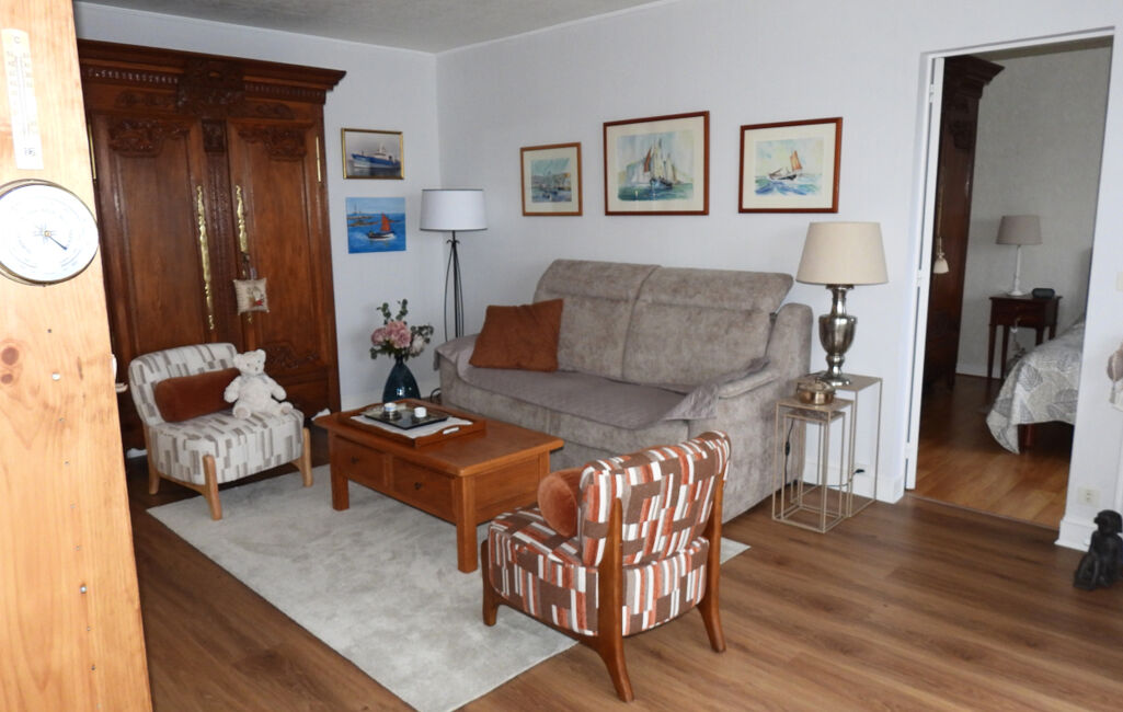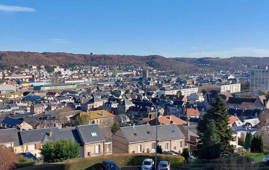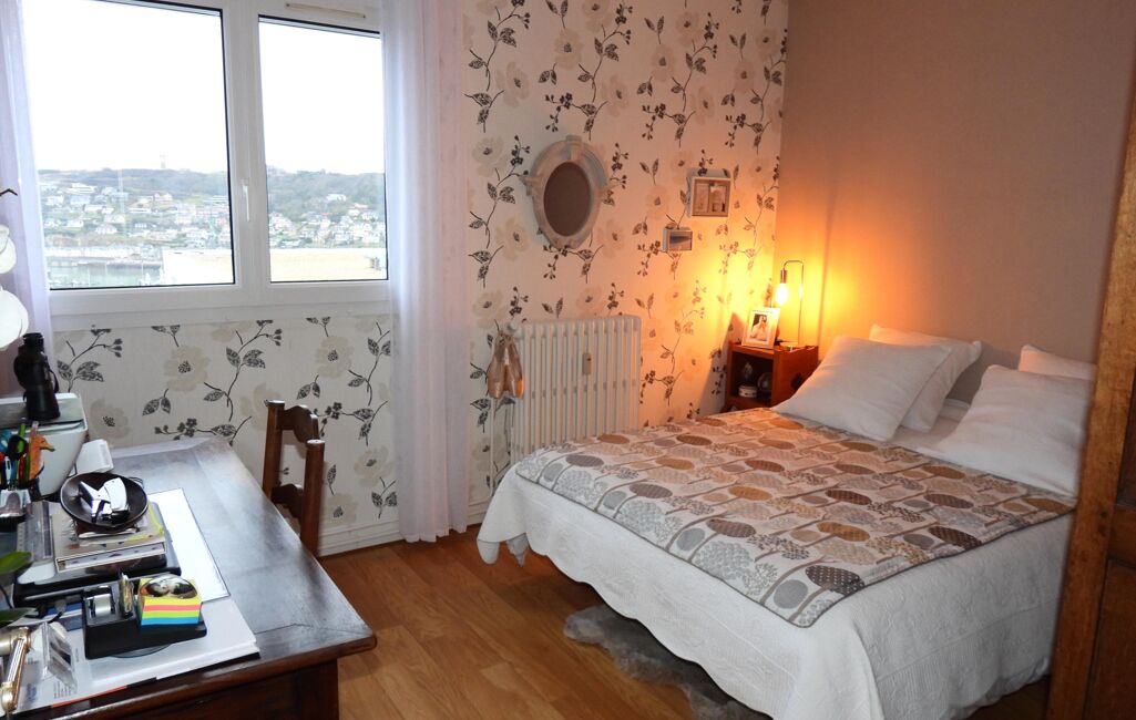 FECAMP, avec superbe vue dégagée sur la mer, la ville et le port, appartement 79.01m² loi carrez à vendre, entièrement rénové avec des matériaux de qualité et avec gout avec ascenseur et balcon composé: