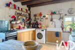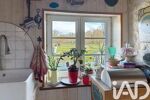 L’intérieur est tout aussi charmant. Dès la porte passée, la pierre et le bois sont omniprésents. L'entrée dessert une cuisine séparée de 16 m² avec très bel évier timbre et un passe-plat creusé dans la pierre, un séjour de 30 m² réchauffé par un poêle à bois, et un wc avec douche.