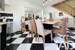 L’entrée s’ouvre sur un bel espace de vie d’environ 50 m² regroupant salon et salle à manger, dans la continuité d’une cuisine aménagée et équipée. Un WC indépendant complète le rez-de-chaussée.