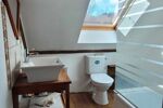 à l'étage vous y trouverez l'espace parental, chambre, coin de douche et espace de rangement.