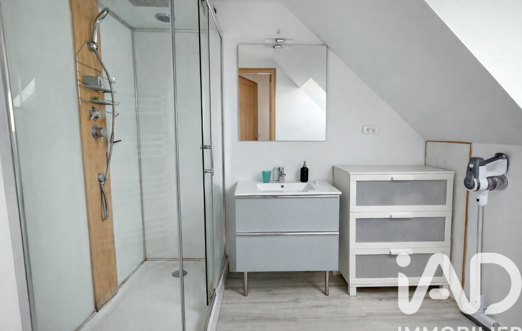 Au deuxième niveau, un espace parental sous combles propose une chambre avec sa salle d’eau privative, pour un ensemble d’environ 19 m² au sol.