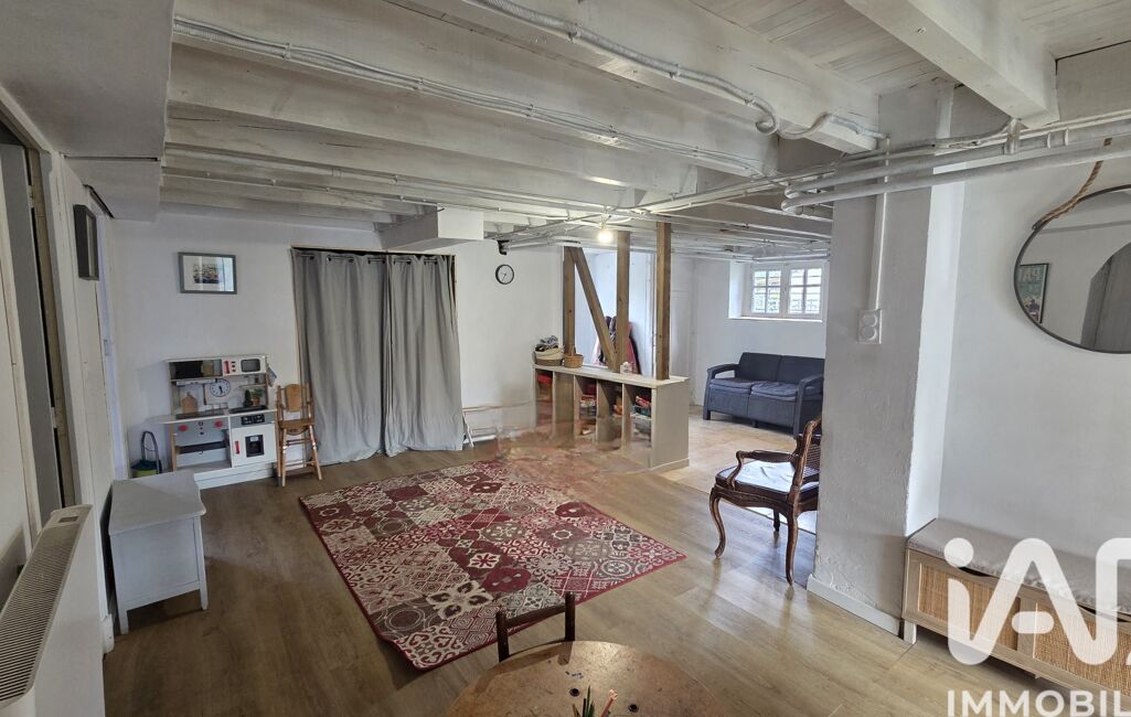 À l’étage, vous trouverez une pièce de vie lumineuse avec salon/salle à manger de 22m2 environ, cuisine séparée de 13,60m2, ainsi que 2 chambres et une salle d’eau avec WC.
