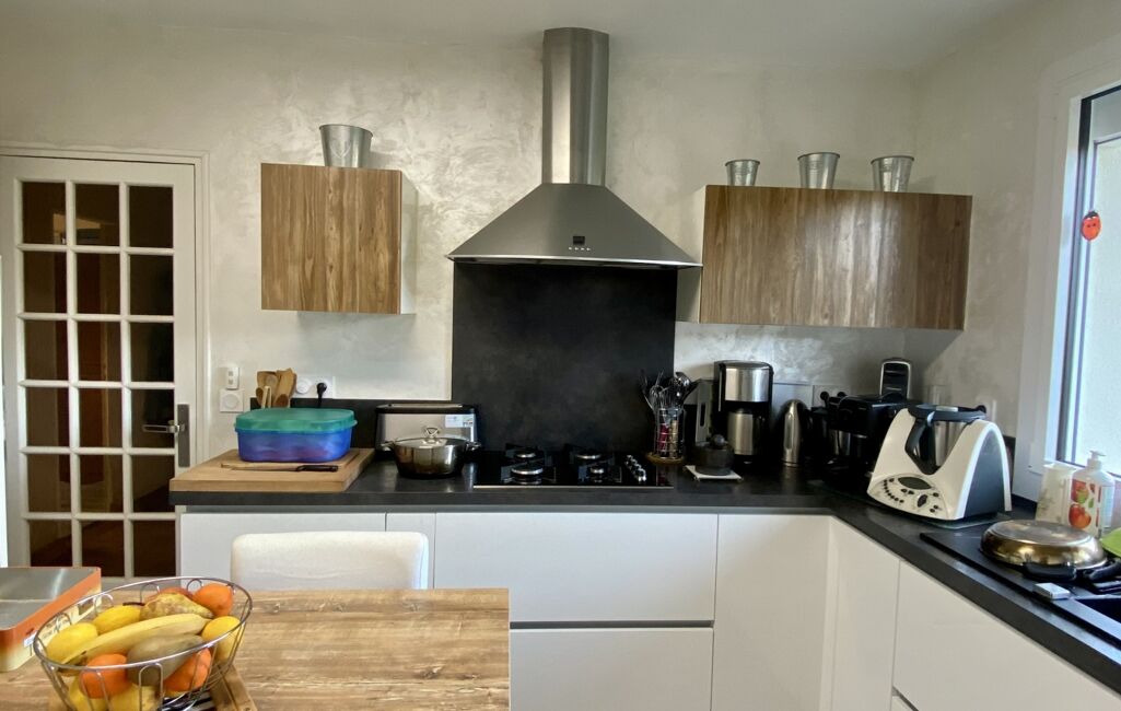 Au niveau des pièces, au rez-de-chaussée vous disposerez d’une chambre parentale avec une salle de bain, un WC séparé. L’espace de vie comprend une cuisine aménagée et équipée de 2019, un salle à manger avec son poêle à bois.