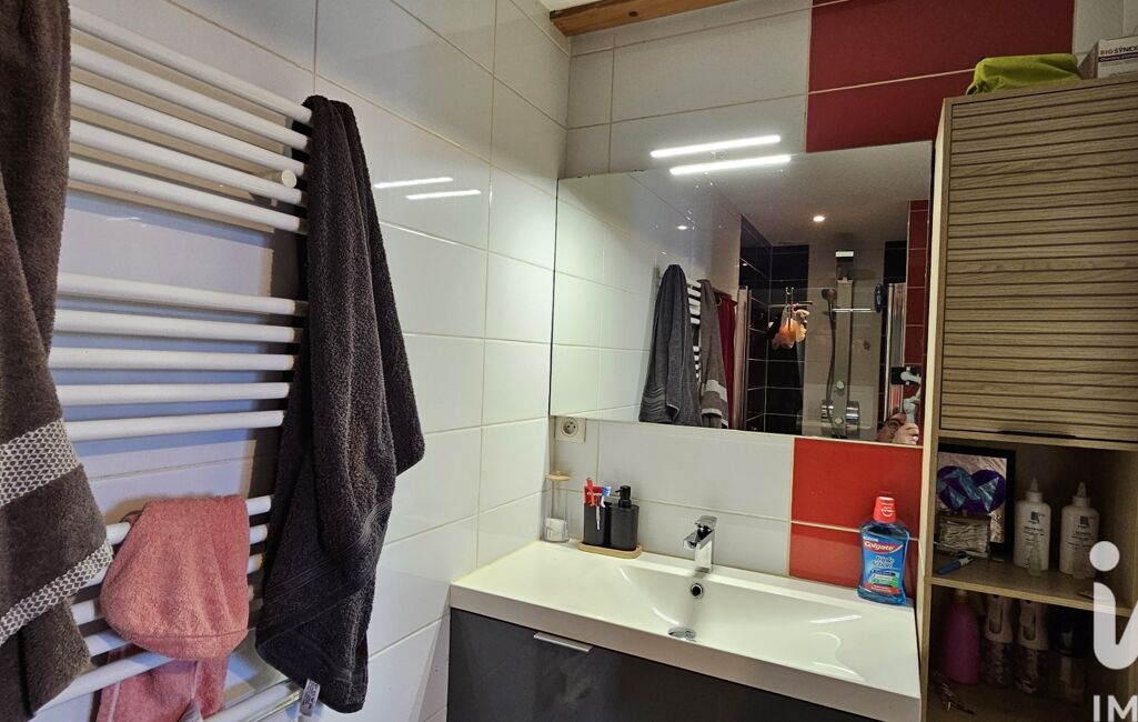 Vous profiterez également d'une suite parentale avec une chambre de 10 m², de placards de rangement, et d'une salle d'eau faïencée avec simple vasque, douche à l'italienne et sèche-serviettes.
