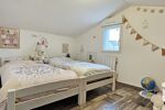 À l’étage, le palier avec son espace de jeux, vous offre DEUX chambres supplémentaires, ainsi qu'une salle de bains avec double vasques, baignoire, sèche-serviettes et WC.