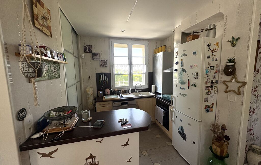 •Séjour cuisine ouverte de 33 m², lumineux, avec cuisine aménagée et équipée (four, hotte, plaque, lave-vaisselle)