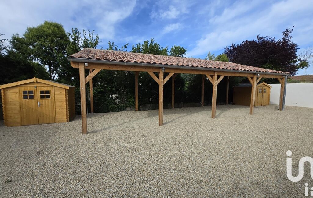 Un abris 2 voitures est aménagé au fond du terrain et pourrait être fermé en garage. Plus un petit chalet bois.