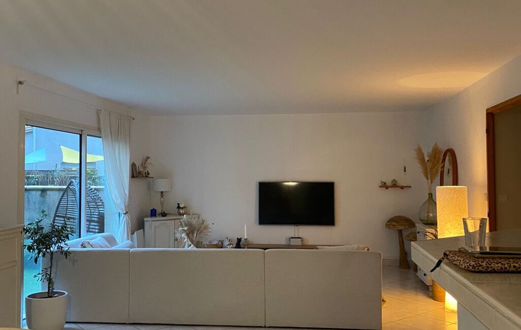 L'appartement se compose d'un séjour spacieux de 41.6m², de deux chambres avec des superficies respectives de 11.35m² et 11.8m², d'une salle de bain, d'une cuisine ouverte de 11.7m² et d'un WC séparé. La configuration en rez-de-chaussée est idéal pour les familles avec jeunes enfants ou pour les personnes à mobilité réduite.