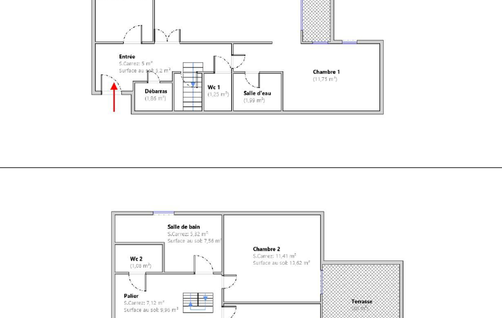 Au premier niveau, vous serez séduit par un espace de vie généreux comprenant un salon, une salle à manger, une chambre ou un bureau, une cuisine indépendante, une salle d'eau, un WC, et un grand balcon pour profiter des beaux jours. L'agencement astucieux des pièces offre une fluidité parfaite et un confort indéniable.