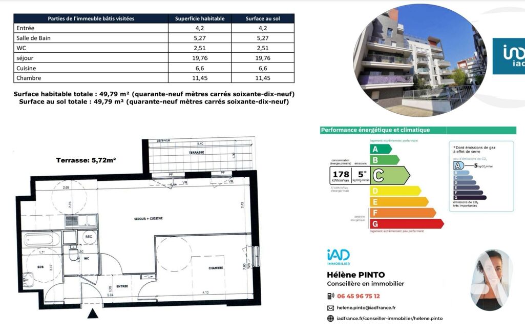 - Surface terrasse : 5.72 m²