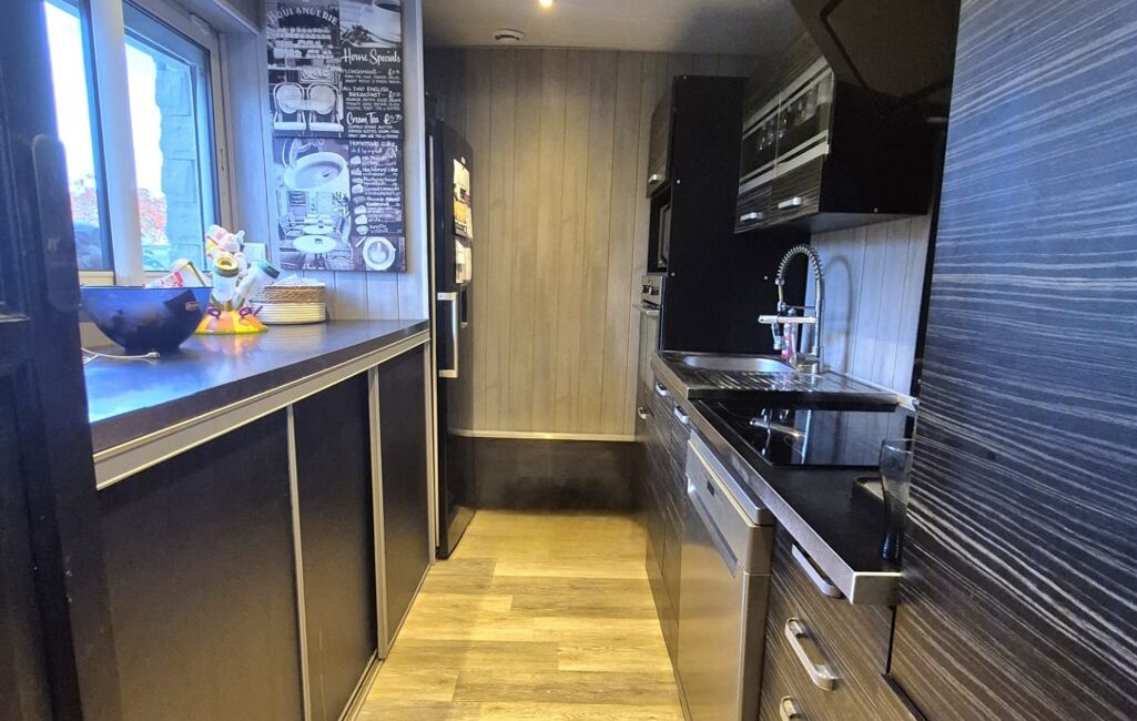 Elle offre de beaux volumes et une luminosité naturelle grâce à son salon-séjour spacieux, agrémenté d’un poêle à bois, idéal pour des moments chaleureux et conviviaux. Une cuisine équipée, moderne et fonctionnelle facilitant le quotidien.