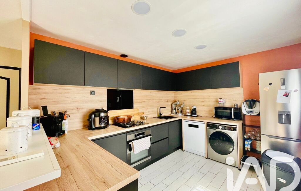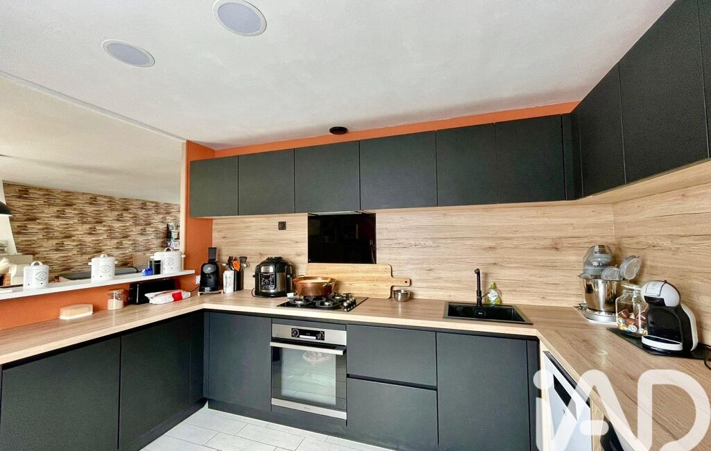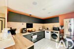La cuisine est le point d'orgue de cet espace : installée il y a seulement un an, elle propose un design sur-mesure noir mat et bois clair, alliant esthétique contemporaine et rangements optimisés.