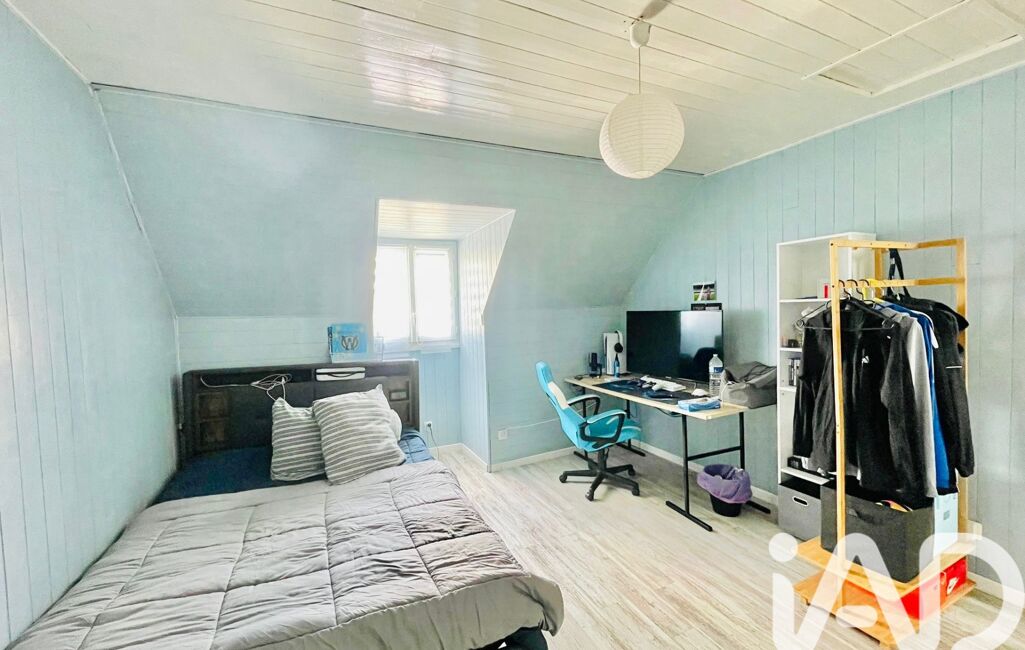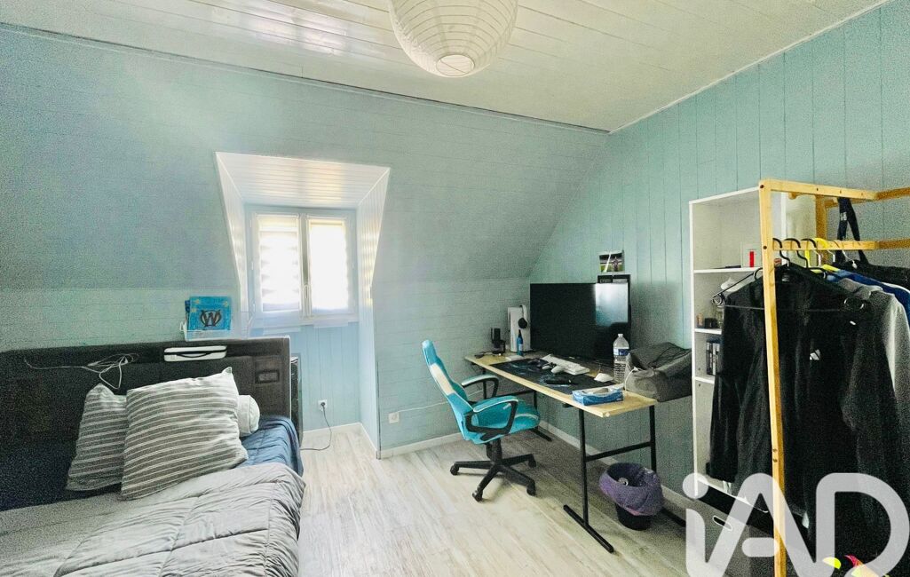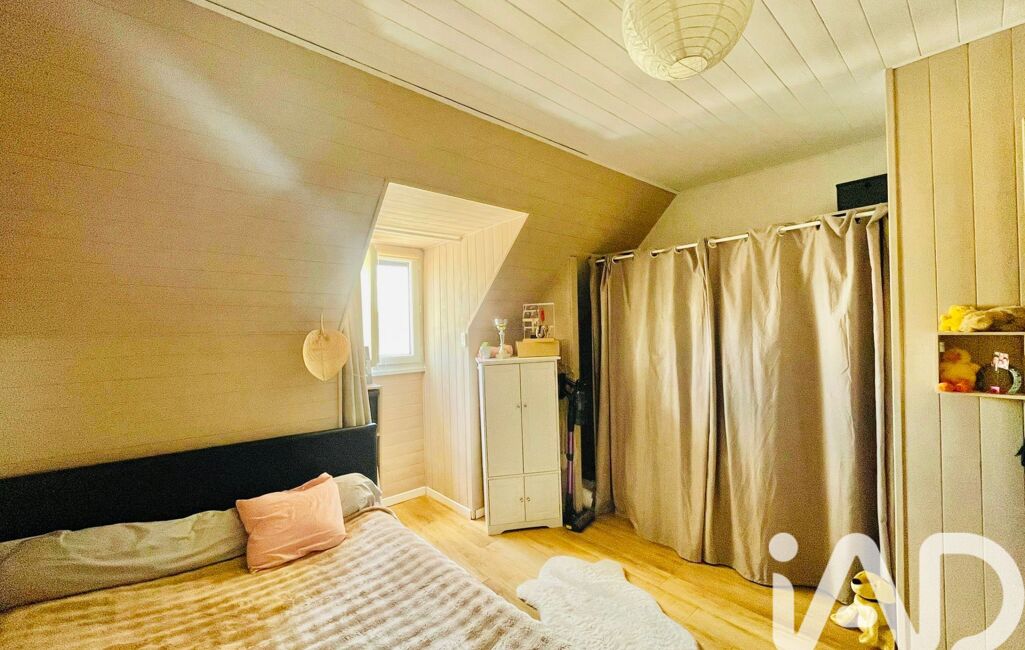À l’étage, le couloir dessert trois chambres, dont l'une bénéficie d'une belle luminosité traversante grâce à ses doubles Velux.