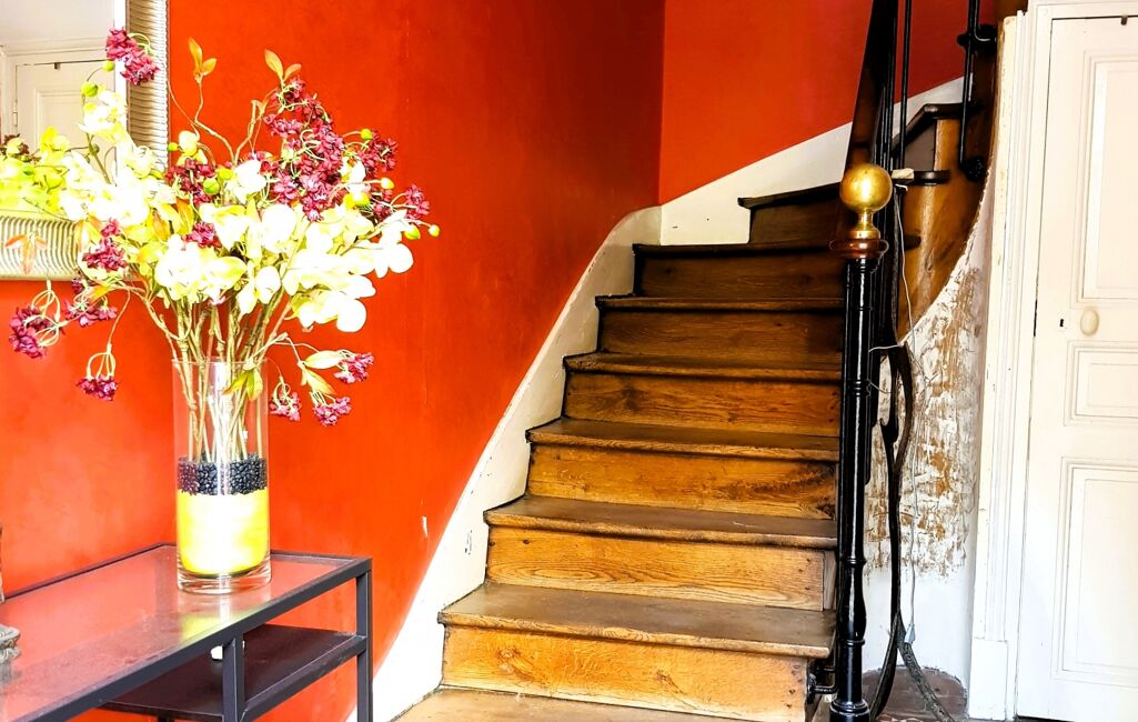 Vous serez séduit par le côté ATYPIQUE et CONFORTABLE de ce logement distribué par un BEL ESCALIER CENTRAL en chêne.