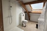 Le premier logement, actuellement en cours de rénovation, propose une pièce de vie de 72 m² en rez-de-chaussée avec doubles WC. À l’étage se trouvent une salle de douche, un lavabo et des doubles WC et la possibilité de faire une à deux chambres . Les volumes déjà existants offrent un confort et une modularité intéressante.