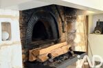 •une salle à manger avec un four à pain traditionnel intégré