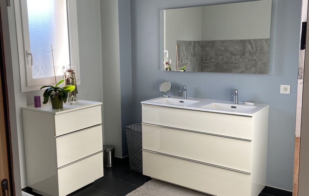 Au rez-de-chaussée, vous retrouverez une cuisine aménagée et équipée, qui a été récemment faire sur mesure, avec accès direct à la terrasse couverte par une pergola. Un salon / salle à manger de plus de 40m2 invite à un espace de vie convivial. Une suite parentale de 32 m², comprenant une salle de bain avec douche à l’italienne et baignoire, complète ce niveau.