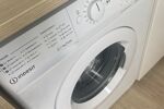 - Une cuisine équipée ouverte sur le salon avec four encastré, plaque de cuisson induction, une hotte ainsi qu'un réfrigérateur-congélateur, un lave vaisselle et une machine à laver.