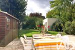 Le terrain arboré de 413 m² invite à la détente, à la convivialité et au jeu pour les enfants. Le cabanon, le garage et les places de stationnement complètent les espaces extérieurs.