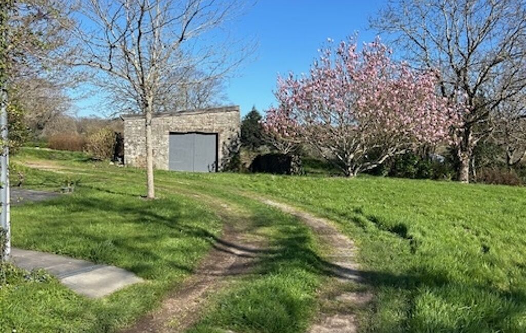 Accès indépendant par le jardin vers un garage individuel.